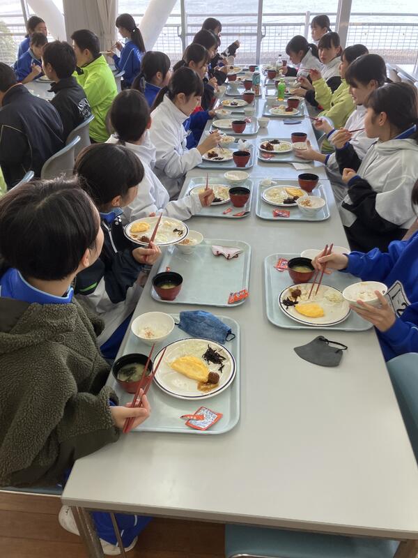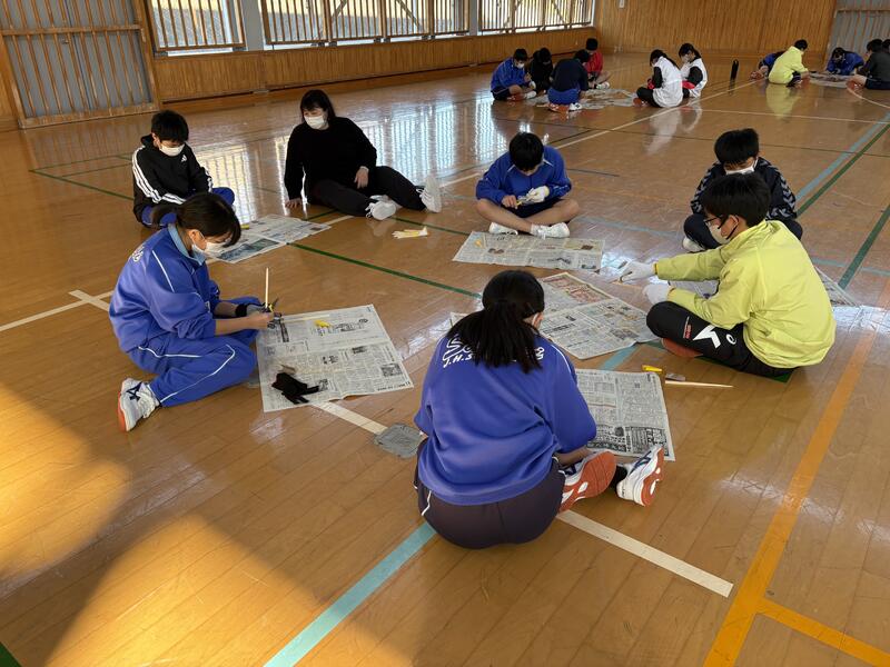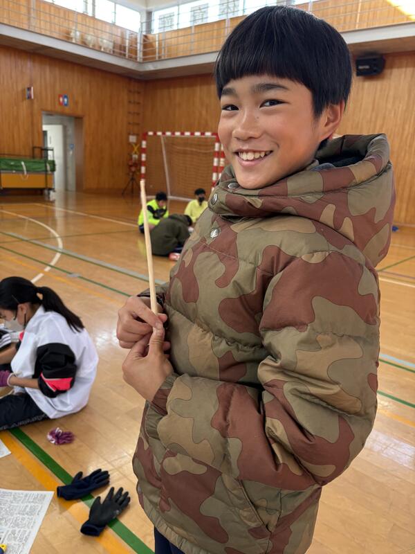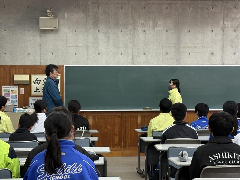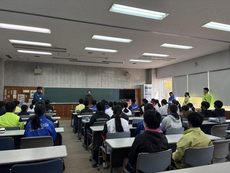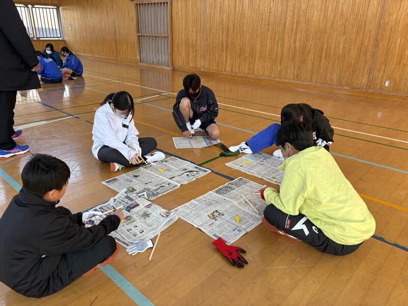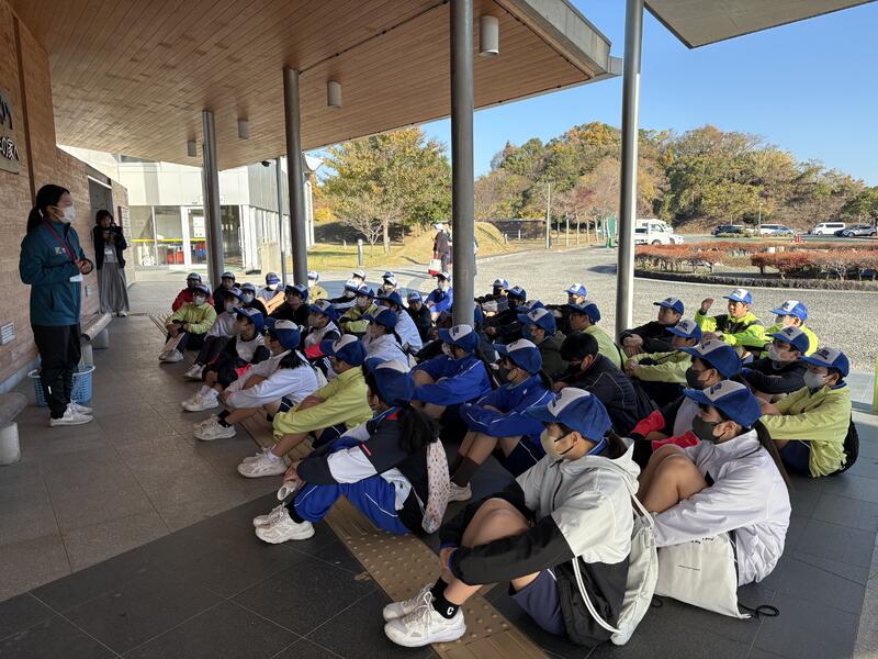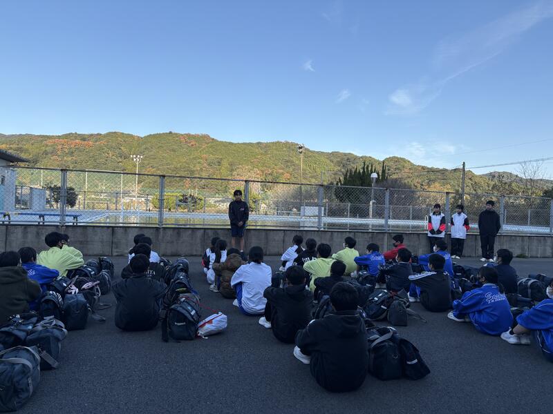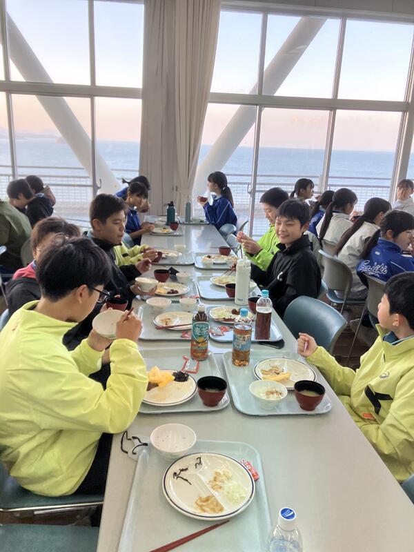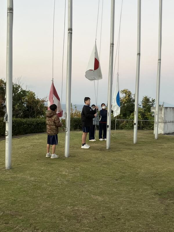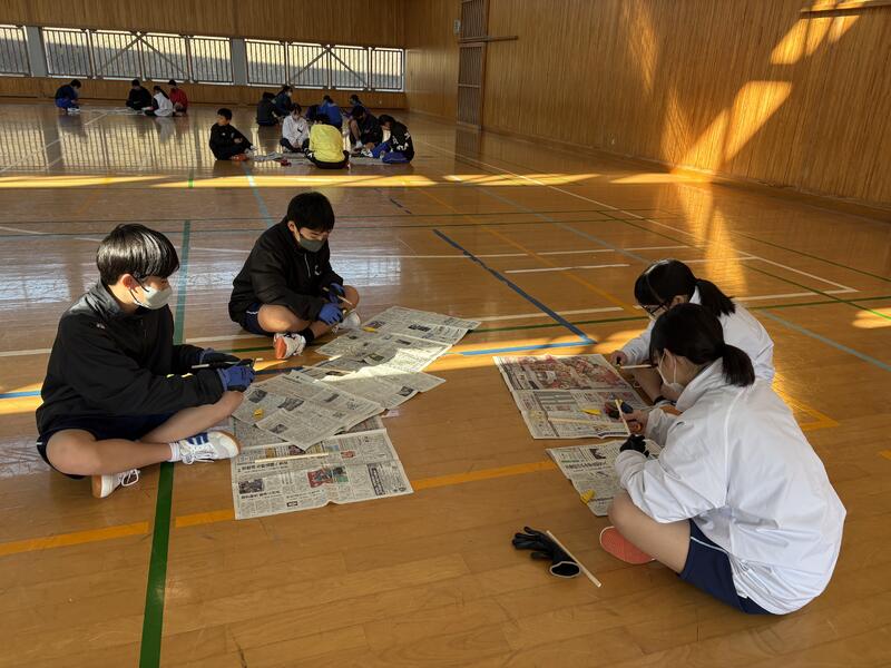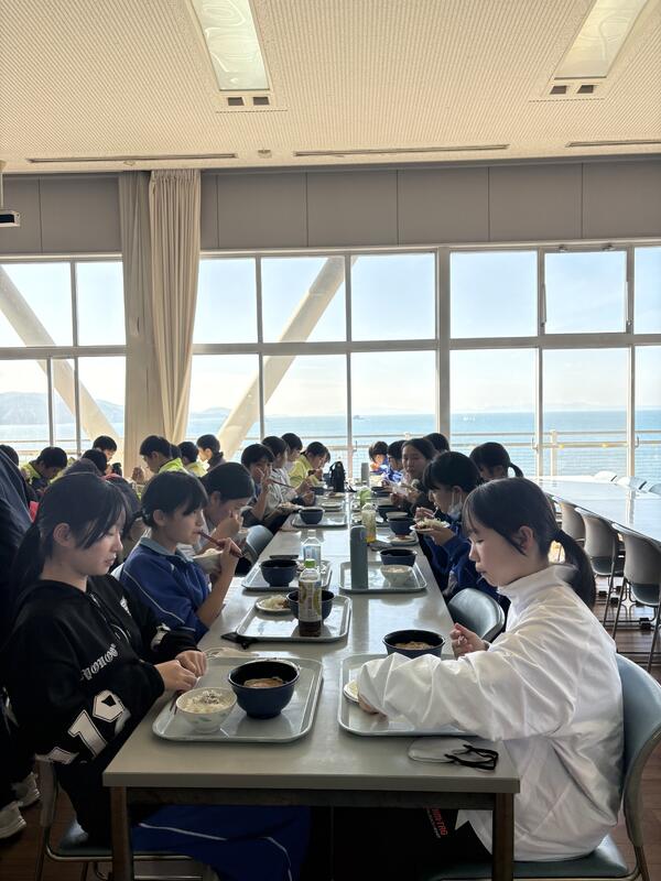 晴天の中、班で協力しながら、ビンゴオリエンテーリングがんばっています。芦北のきれいな景色を見ながら楽しそうに取り組んでいます。