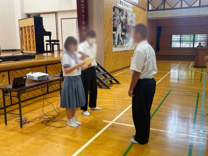 2年生の10数名が千丁中学校をたんけんに来ました。