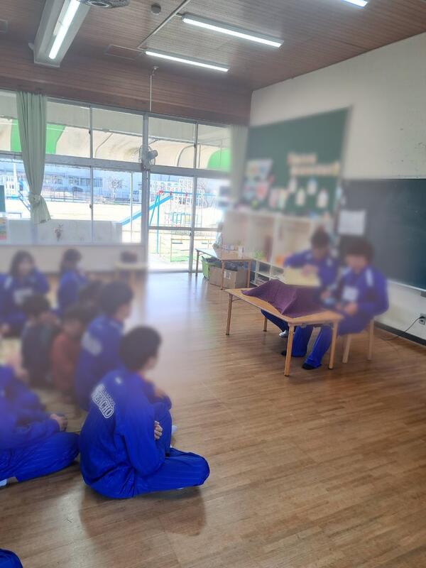 3年1組はみどり保育園に、3年2組は千丁幼稚園に行きました。