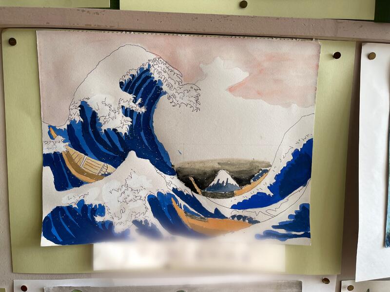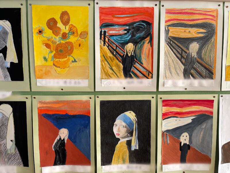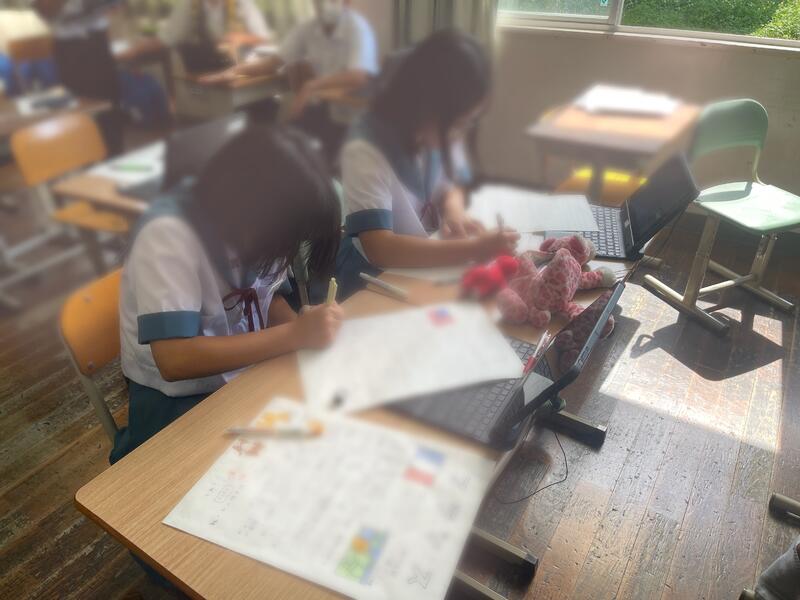 1年生は劇や発表の練習を行っています。世界の国々を調べてまとめる展示の方にも取り組んでいます。