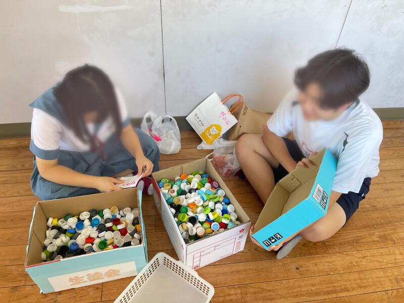 生徒会執行部を中心にペットボトルキャップの回収を行っております。