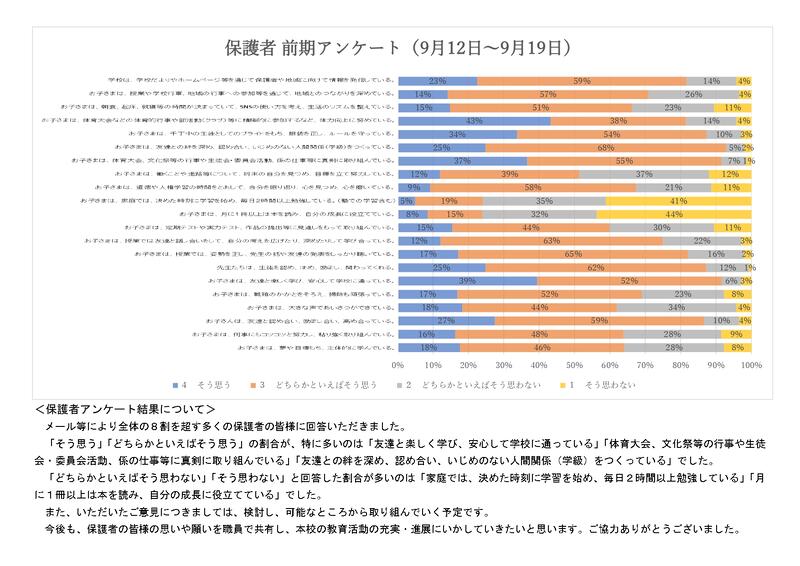 アンケート結果をもとに、後期も教育活動を推進して参ります。