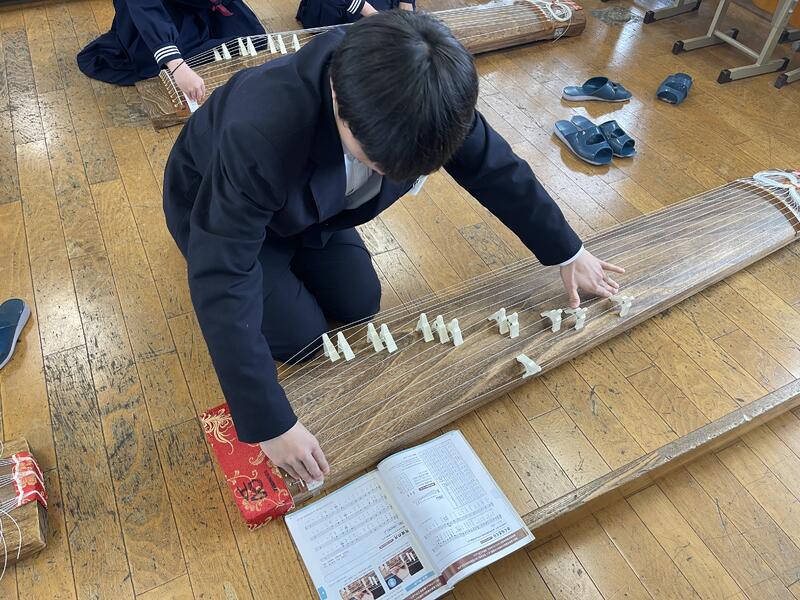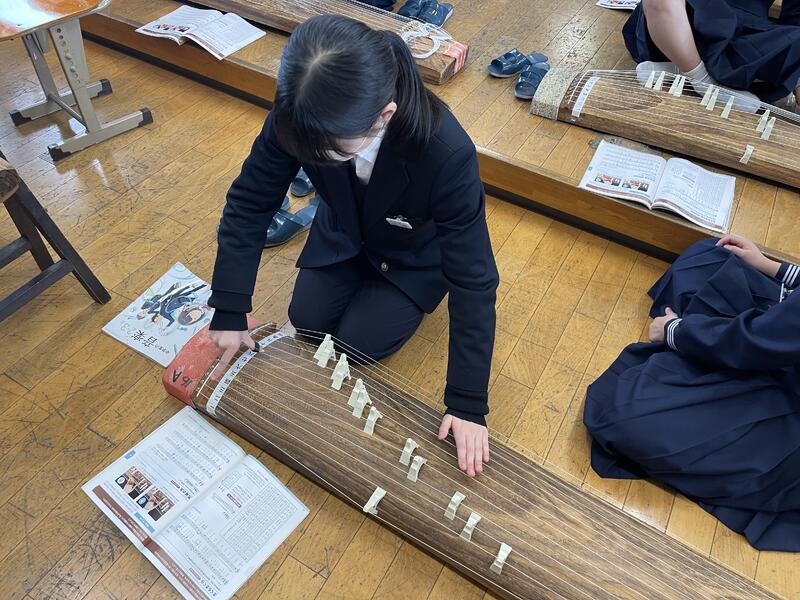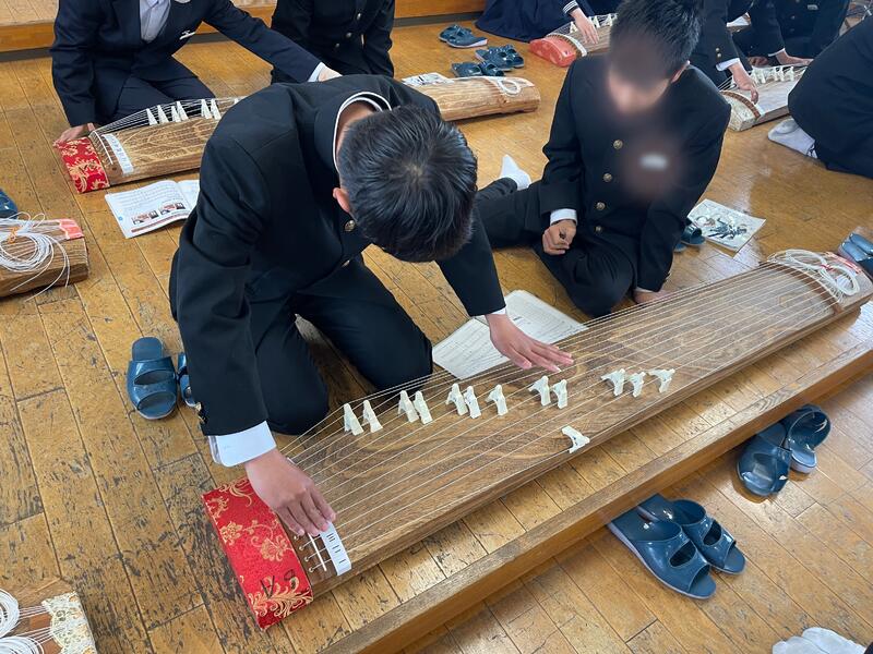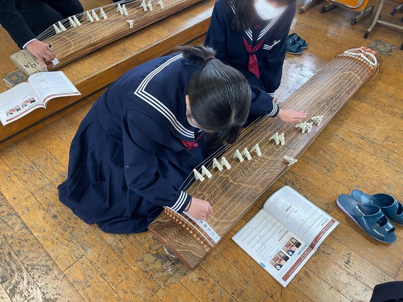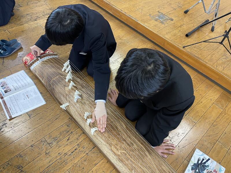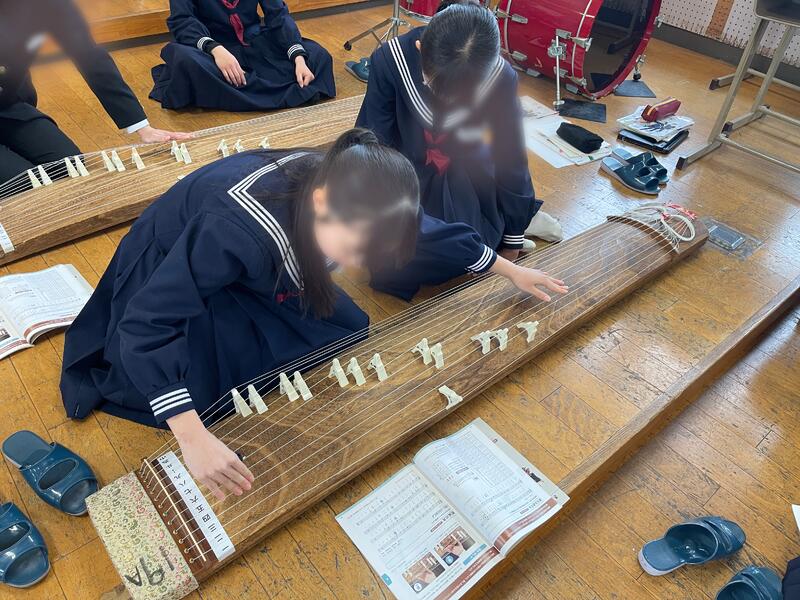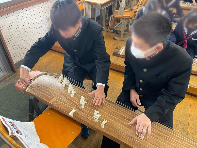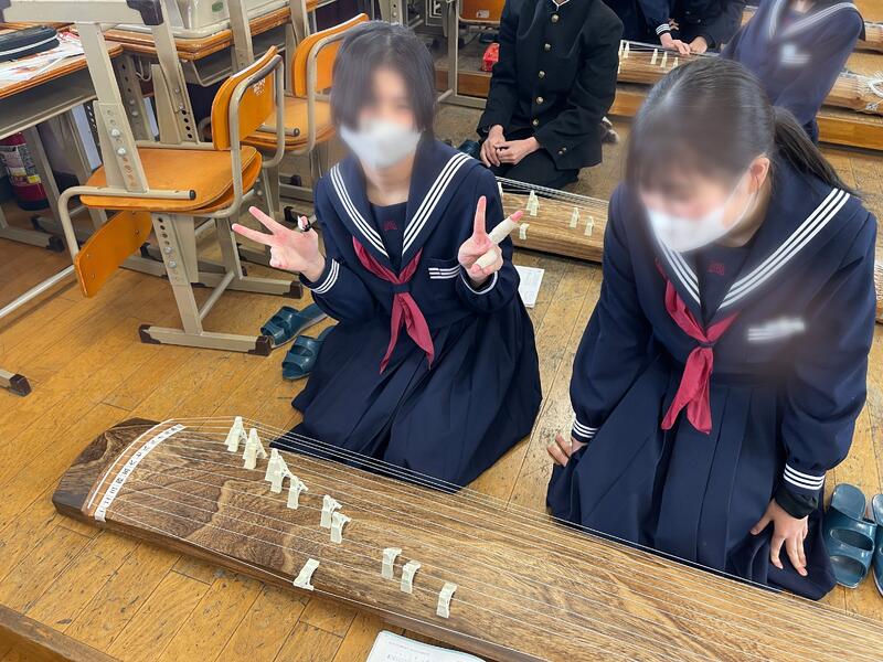 1・2年生では、音楽の授業で箏を演奏しました