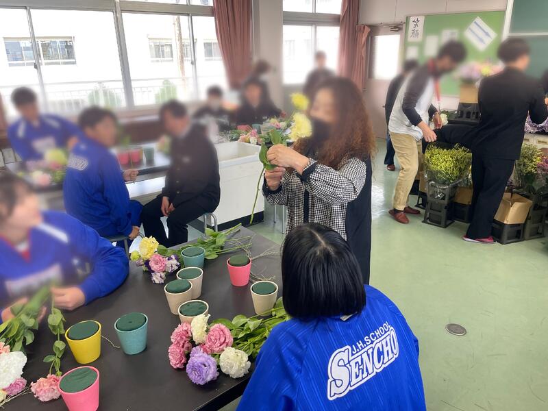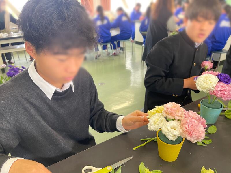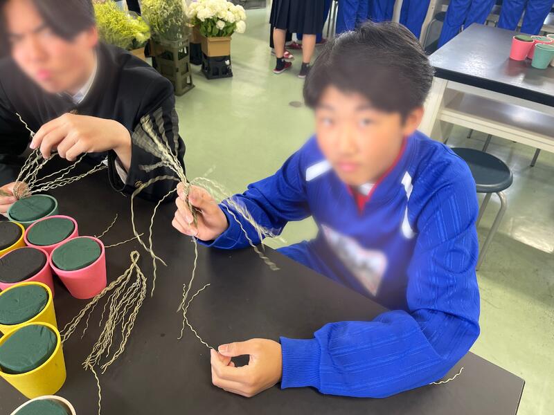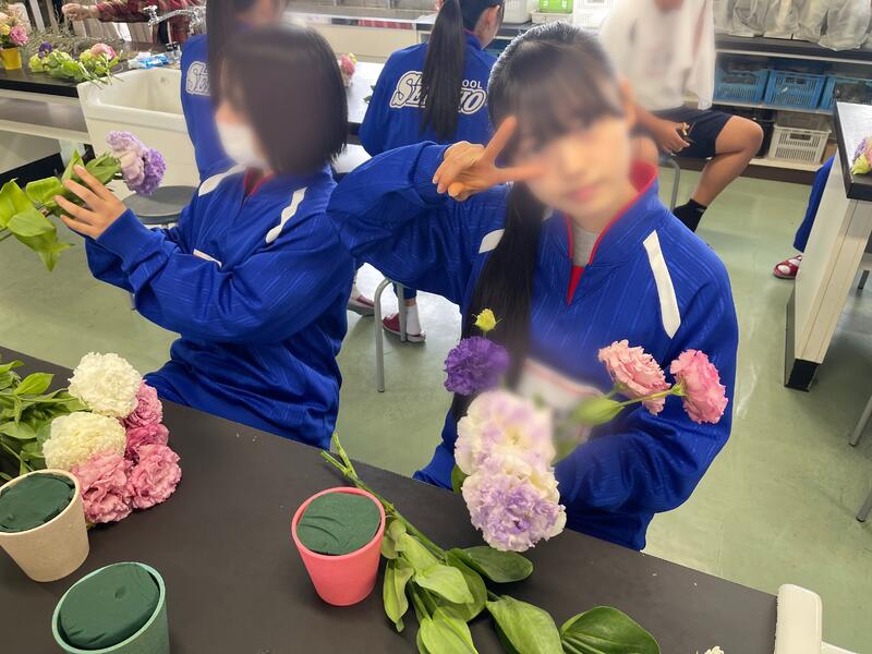 3年生で花束作りを行いました