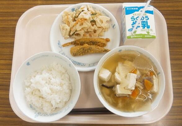【次回】牛乳 ごはん けんちん汁 いわしカリカリフライ② れんこんサラダ