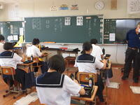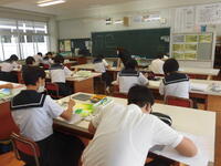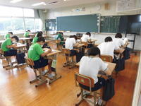 本日1校時の授業は、1年生が理科(イカのからだの観察を通して軟体動物のからだの特徴を学ぶ学習でした)、2年生が国語(「枕草子」の単元テストでした)、3年生が数学(根号を含む式の計算演習でした)でした。各学年ともに集中した取組が見られました。