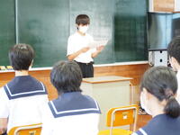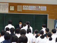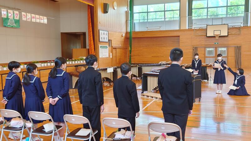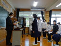 終わりの会では、淀水生徒会長から中学校生活の心構えなど励ましの言葉がありました。また、代表の浪床さんが本日体験したことを上手にまとめて発表してくれました。6年生のみなさん、本日は大変お疲れ様でした。短い時間でしたが、しっかりと中学校を感じてくれたと思います。次回の体験入学で会えるのを楽しみにしています。