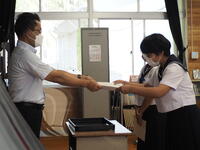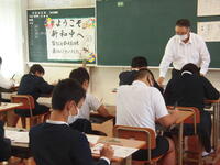 本日、8月29日から本校でも2学期がスタートしました。1校時に始業式を行い、2校時は、2学期の自分の目指す姿を考え、目標設定等を行いました。3,4校時は、実力テストに取り組みました。本日から2学期の給食も始まり、新本渡学校給食センターからの配食も始まりました。保護者の皆様、地域の皆様、2学期もどうぞよろしくお願いします。