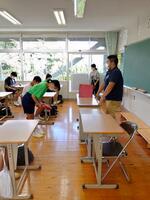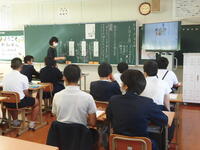 6時間目の社会の授業では、地理の学習を行いました。件名クイズや形あてクイズをし楽しんでいました。50分授業や教科担任制をしっかり味わえていたようです。