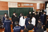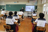 﨑津が世界遺産に登録されてから5年が経ちますが、1年生は小学校の時に1度学習しており、うなずきながら講話を聞いていました。世界でも有名な世界遺産「万里の長城」、最近の日本の「百舌鳥・古市古墳群」などの紹介から入り、キリスト教伝来など日本史の流れも説明されながら天草や﨑津の歴史の説明がありました。とてもわかりやすい説明でした。3月15日(金)には、1年生は実際に見学に行きますが、その事前学習として大変参考になる講話でした。中山先生ありがとうございました。