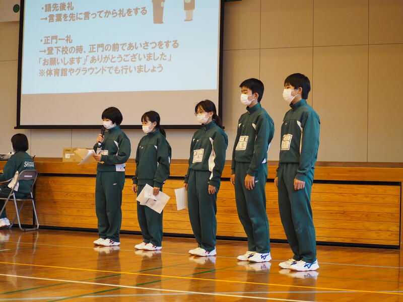 本日、朝活動の時間に「放送による生徒集会」を実施しました。内容は、先日実施した各学年の代表による生徒総会の振り返りの発表等を行いました。コロナ感染も増加傾向ですので、今後も内容によっては、放送やリモートを使った集会等も実施していく予定です。