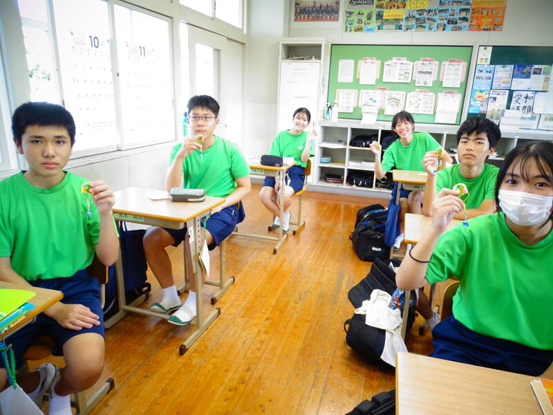 8月29日に、本校3年生に、商工会の平道様から合格たこストラップを贈呈していただきました。例年、商工会からいただいており、2学期スタートのモチベーションにもつながっていることに感謝いたします。大変ありがとうございました。