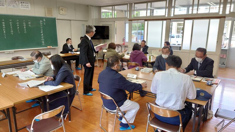 4月28日(金)に令和5年度の第1回新和小中学校運営協議会を新和中学校で開催しました。午前中に生徒の授業の様子を見ていただいた後、小中学校の学校経営の説明をしました。委員の皆様に3つのコミュニテイー(学習支援、環境・安全、心と体)で本年度の活動内容を熱心に検討していただきました。