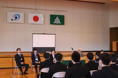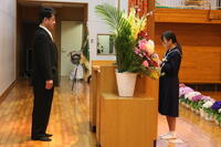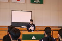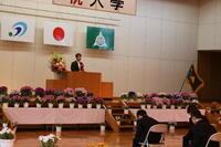 式辞ではイチロー選手の「特別なことをするために特別なことをするのではない。特別なことをするために普段通りの当たり前のことをする」という言葉を引用し、挨拶や学習、部活動、学校行事など中学校生活の一つ一つを丁寧に取り組んでいくことで、将来に役立つ力がついていく。中学校の3年間で未来を切り拓く力をつけて欲しいと述べました。