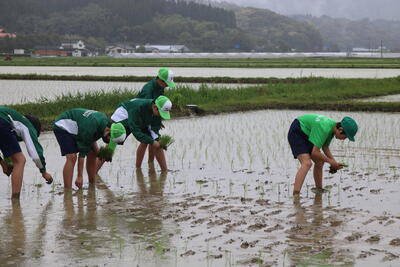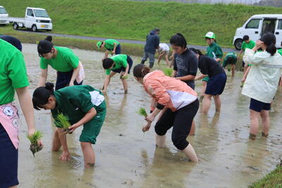 新和中学校の伝統行事である「田植え」を行いました。