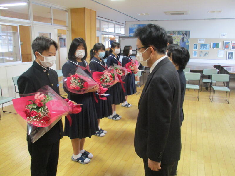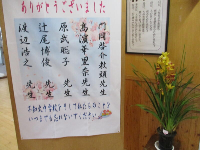 3月28日に退任式を行いました。今年度は5名の先生が不知火中学校を退任されました。