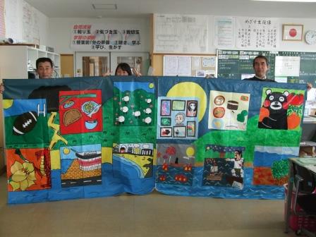 絵のテーマやお互いの地域の文化などを紹介するなどコミュニケーションをとり(もちろん英語で)、完成したものです。