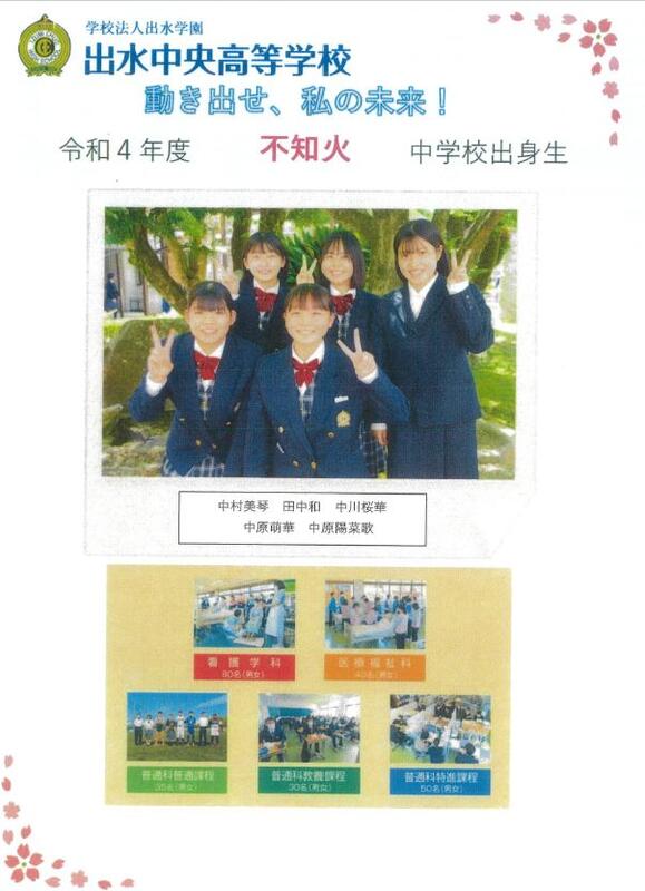 先日、出水中央高校の先生から、不知火中出身の先輩たちの頑張りを聞きました。