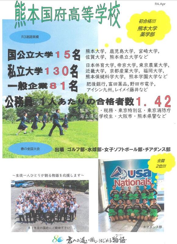 国府高校からも進路実績や部活動での活躍についてのおたよりがきました。