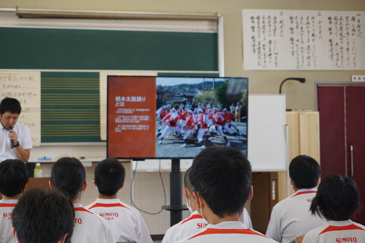 9月16日(月)の総合的な学習の時間に栖本太鼓の練習を行いました。まずは、去年の栖本冬物語の栖本太鼓の様子をビデオで視聴しました。また、地域の方にも来ていただき、お話を聞きました。地域の栖本太鼓の練習も始まったと聞きます。長くから続く伝統ある「栖本太鼓」。思いを引き継ぎ、見ている人を感動させるような踊りができればと思います。去年に引き続き、地域の方のお力を借りながらの練習になるかと思います。今後も、よろしくお願いいたします。