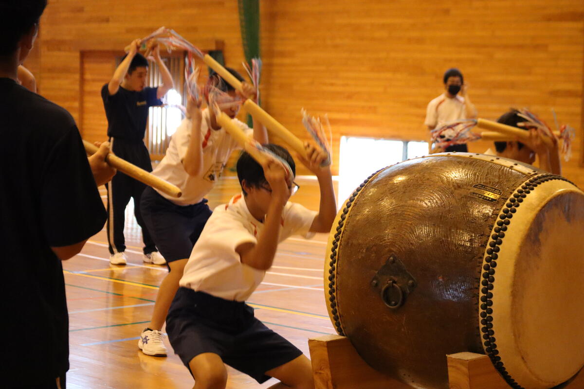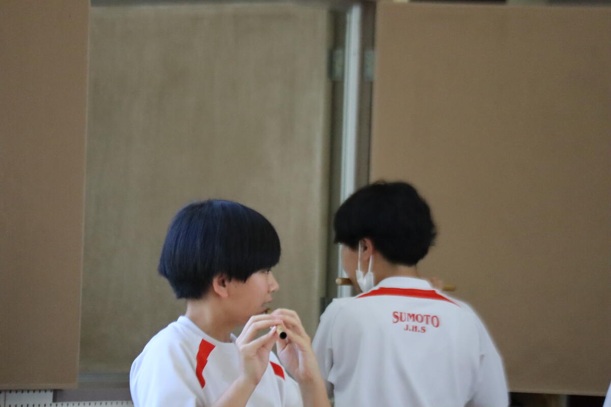 また、毎週地域の方に来ていただいて、太鼓や笛の練習を行っています。太鼓は腰を落として打つので、なかなかにハードな運動になります。笛は、音を出すことから始めています。苦戦している姿も見られました。限られた時間を有効に使って、栖本冬物語に向けて練習を重ねていきます。そして、地域の伝統を受け継いでいってくれる存在になってくれることを期待しています。
