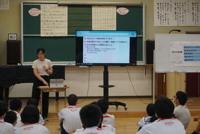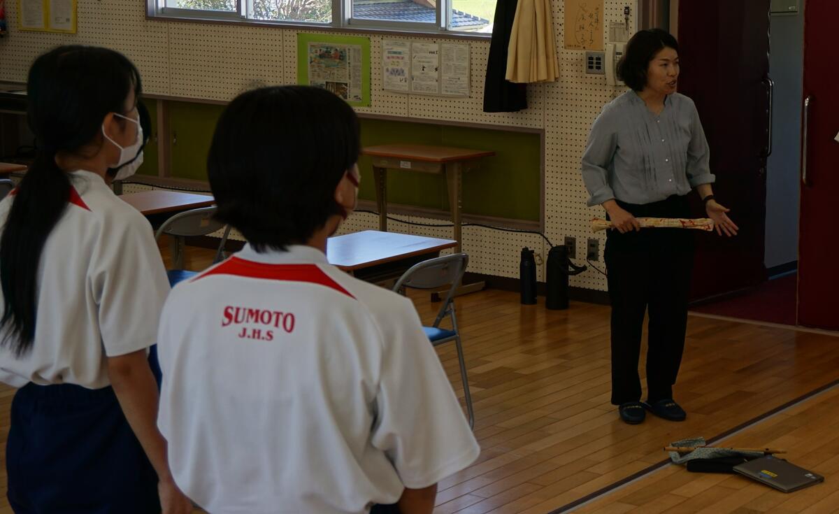 9月25日(木)に栖本太鼓の講話がありました。栖本太鼓の発祥や、どのようにして受け継がれてきたのかを地域の方に学びました。生徒の振り返りでは「これまでに多くの人が栖本町や太鼓を継承するために様々な工夫をしてきたことを知って僕も授業などで太鼓練習して伝統を受け継げるように頑張ろうと思いました。」等伝統を受け継ごうとする意欲を高めていました。
