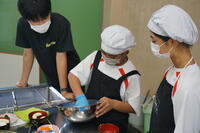 9月25日(木)に1年生の調理実習がありました。作ったのはハンバーグ、添え野菜、そしてりんごでした。(りんごは皮むき)どの子も率先して活動し、とても楽しそうでした。味付けもバッチリだったようです。