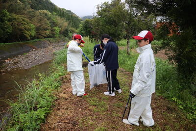 4月21日(日)に、全校生徒で「河内川清掃」に参加しました。あいにくの雨の中でしたが、無事に開催され、河川敷や歩道のゴミ拾いを行うことができました。「小さなゴミでも見逃すまい」と、どの班も真剣に、協力して取り組んでいました。