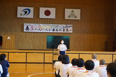 22日(土)からはじまる本番では、自分やチームの目標を達成できるよう、最後まで諦めず、栖本中生らしく全力プレーで頑張ってほしいと思います。また、お世話になった方々への感謝の気持ちを忘れず、これまでの練習の成果を発揮できることを大いに期待しています。