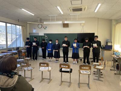1年生は、慣れない環境の中、初めてづくしの毎日で大変だったと思いますが、授業や行事等すべてにおいて、14人で協力してよく頑張ってきました。毎日明るい挨拶や活発な発言で、他学年の生徒や職員に元気をくれました。