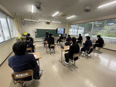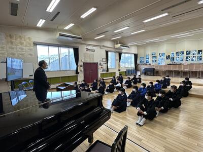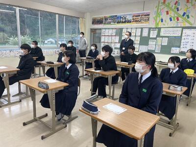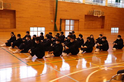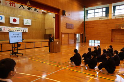 その後、校長先生から、3年生のこれまでの頑張りや今後の生活についてお話を頂きました。卒業式前ということもあり、聞く態度や姿勢なども立派でした。