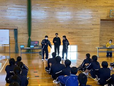 3月1日(金)に、3年生の送別レクリエーションとして「人狼鬼ごっこ」が行われました。3年生がみんなでしたいと考えた案をもとに、健康体育委員長が主となって考えてくれました。