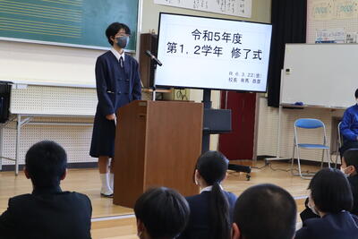 3月22日(金)に、「1・2年生修了式」が行われました。