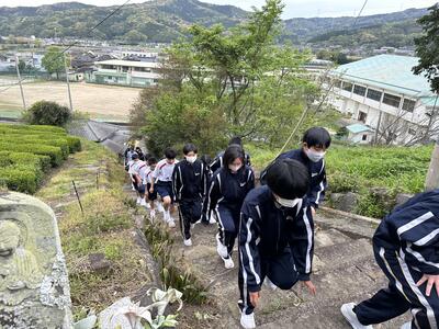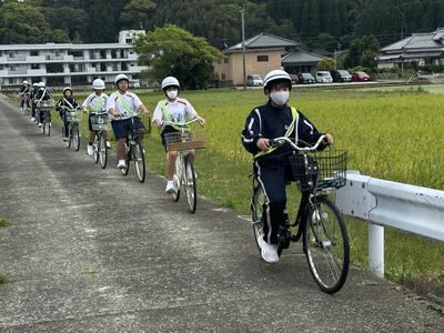 後半は、交通安全教室として、正しい自転車の乗り方を学び、実際の校区内を回る、実技走行を行いました。また、最後には栖本駐在所の警察の方にお話をしていただき、生徒たちも改めて交通ルールを守ることの大切さを感じているようでした。
