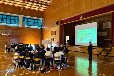 立会演説会では、候補者が全校生徒に対して公約や自分の想いを伝えました。それぞれの候補者が堂々と発表し、聴いている側もしっかりと演説を聴きながら、多くの質問を出していました。全校生徒から「栖本中学校をよりよくしていきたい」という想いが伝わってきました。