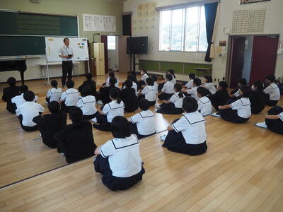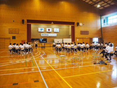 5月24日(水)に有馬校長先生から風水害避難についての講話をして頂きました。梅雨前ということで、いつ起こってもおかしくない災害に備えるための講話に対して、生徒たちは自分事として考えて話を聴いているようでした。「自分の命は自分で守る」という思いを持ちながら、日頃から備えをして生活してほしいと思います。
