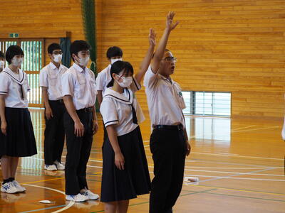 6月14日(水)に天草郡市中体連の選手推戴式を行いました。各部活動の主将が目標や意気込みを発表し、選手を代表してバスケ部主将の梅田未来さんと野球部主将の山形直哉くんが選手宣誓を行いました。また、蓑田希維さんが、選手たちに対して激励の言葉を述べました。17日からはじまる本番では、お世話になった方々への感謝の気持ちを忘れず、これまでの練習の成果を発揮できることを大いに期待しています。保護者の皆様も、あたたかいご声援をよろしくお願いいたします。