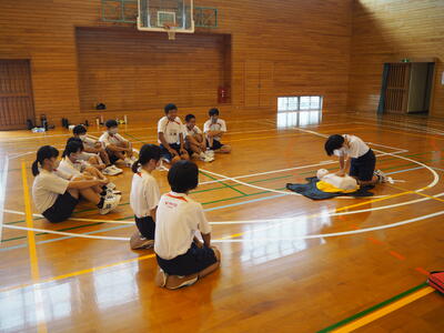 7月12日(水)に、天草広域連合消防本部の方々が救急救命講習を行ってくださいました。生徒たちは10日(月)に動画視聴で事前学習を行い、今回の講習に臨みました。最初に講話を頂き、その後学年ごとに、胸骨圧迫と人工呼吸による心肺蘇生法、AEDの取り扱い等に関する実技講習を受講しました。生徒たちは真剣に説明を聞くとともに、積極的かつ熱心に講習に取り組んでいました。