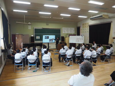7月10日(月)に職業講話が行われました。今年度は、天草市議会議員の吉田修様と本戸馬場八幡宮宮司の宮﨑洸祐様をお招きし、仕事内容についてのお話や進路選択についてのアドバイス等を頂きました。生徒たちは、受験や就職等の近い将来の進路選択に向けて真剣に講話を聞き、積極的に質問したり、感想を述べたりしていました。