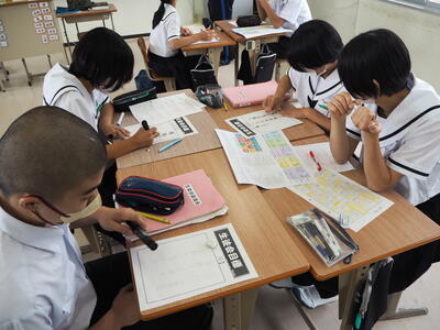 7月21日(金)に生徒会リーダー研修を行いました。今回の研修では、昨年度からの行事等の変更に伴い、生徒会目標や委員会活動計画を見直しました。生徒会役員に任命されてから約半年間、学校のリーダーとして、学級活動や生徒会活動、行事等に率先して取り組み、みんなを引っ張ってきてくれました。今後も、見直した目標や計画をもとに、よりよい学校を目指して精一杯頑張ってくれることを期待しています。