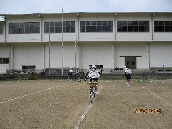 生活環境委員の主催で行われた交通安全教室では、栖本町の駐在所員の奥村様や、交通支援アドバイザーの方々を講師としてお招きして、自転車の乗り方や交通ルールについて確認しました。