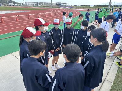 そして、走り終わった後は、男子競技の応援にも全力で、競技終了後は率先して片付けを手伝う姿が見られました。どこに行っても「さすが栖本中」と思われるような行動をしていて、本当に感心しました。