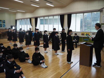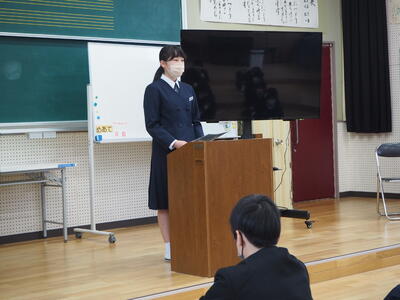 3月24日(金)に1・2年生の修了式が行われました。修了証授与および代表生徒による素晴らしい発表がありました。4月からは、2年生は最上級生として、1年生は後輩ができる立場として、一人一人が意識を高めながら、全校生徒で協力して学校生活を送ってくれることを願っています。
