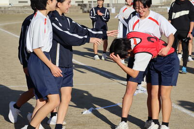 今年度は学年対抗でタイムを競いました。最後までタスキをつなぐため、目標を達成するために全員が全力で走り抜きました。学年関係なく声援を送り、走り終えた選手に駆け寄って「ナイスファイト」と声を掛け、互いに手を合わせる姿に、改めて栖本中生の素晴らしさを感じました。本当によく頑張りました。