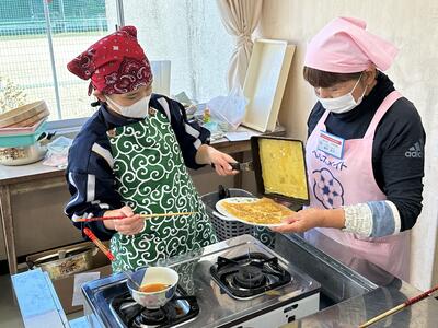 作るのが初めての生徒ばかりで、なかなか難しかったようですが、出来栄えはばっちりでした。調理の後はみんなでおいしくいただき、食改さんからお吸い物もいただいたようです。