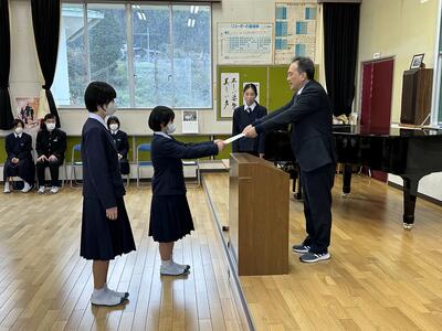 今年1年間、生徒会執行部を中心に、生徒全員で協力してたくさんのことに取り組んできました。特に3年生は、最上級生としての自覚をもちながら、後輩たちを引っ張ってくれました。また、1・2年生はしっかりとついていきながら、来年のために率先して行動してきました。多くの行事で「栖本中生の良さ」を存分に出すことができたのではないかと思います。
