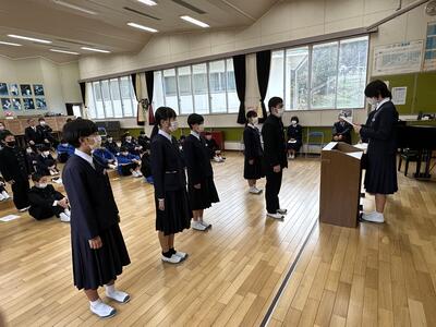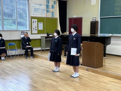 終業式では、各学年の代表生徒が2学期の振り返りと冬休みの抱負を述べました。それぞれがしっかりと自分を振り返り、今後に生かしていこうという姿勢が見られました。