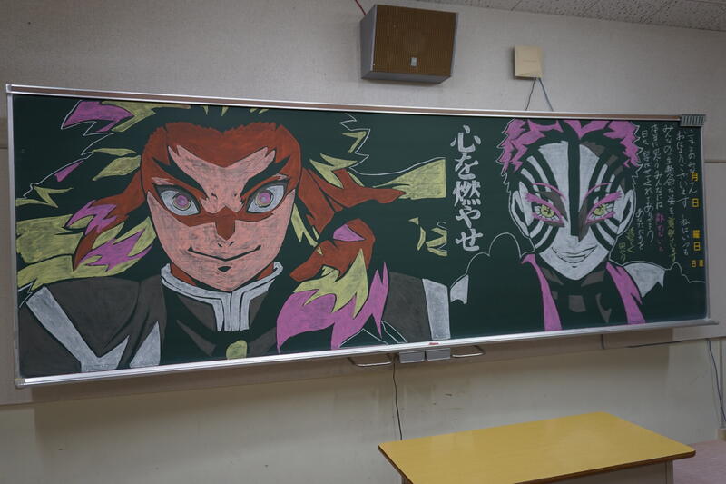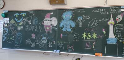 生徒を応援する黒板イラストです。朝からこの黒板を見て出発してくれました。