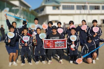 12月6日(土)に校内駅伝大会を行いました。保護者の方をはじめ、地域の方からもたくさんの声援をいただきました。走り終えた後にはグラウンドに倒れ込む場面もあり、一人一人が自分の精一杯の力を出し切って頑張りました。
