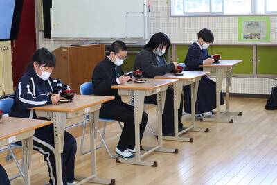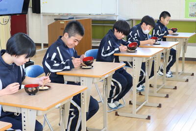 「食べたことのない料理が出てきたときは、わくわくしています。これからも、栄養たっぷりの給食をたくさん食べて、どんどんパワーをつけていきたいです!!」